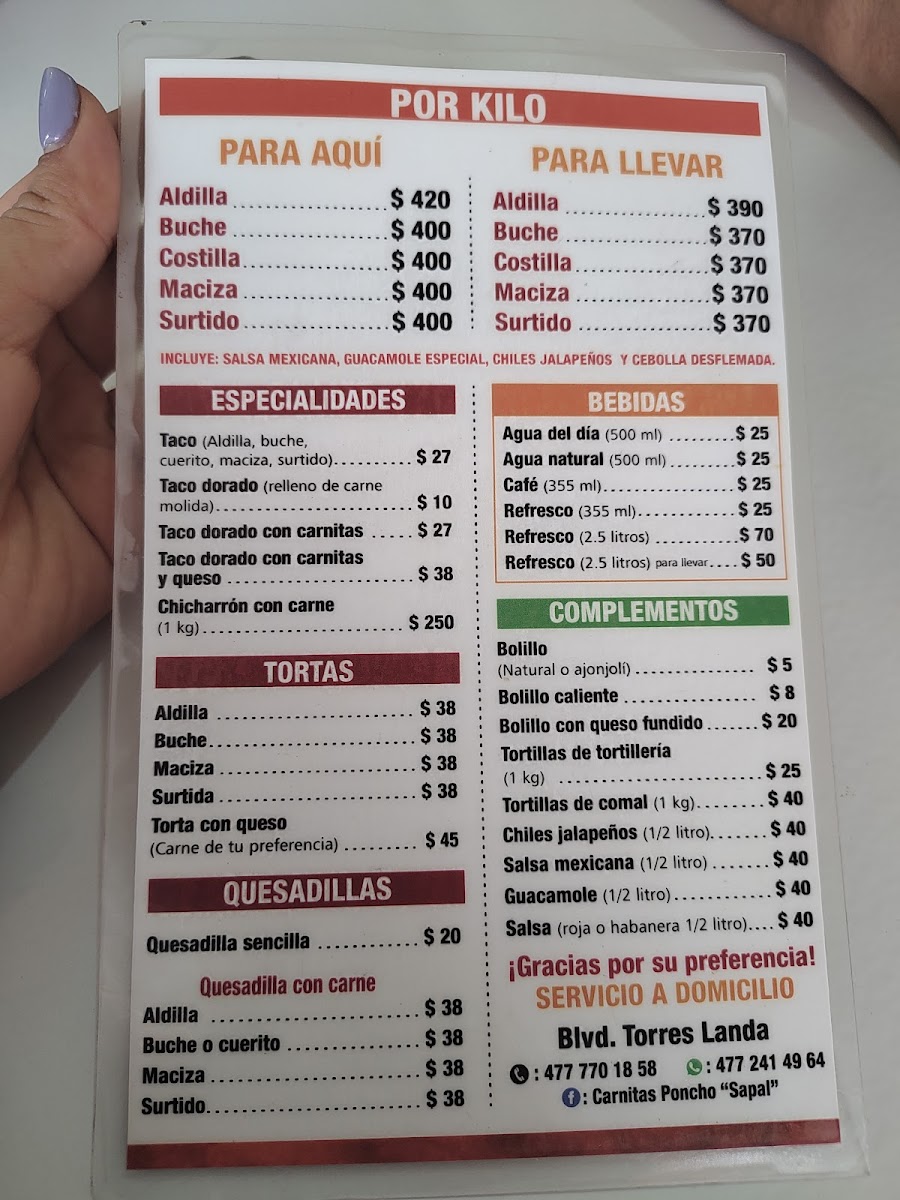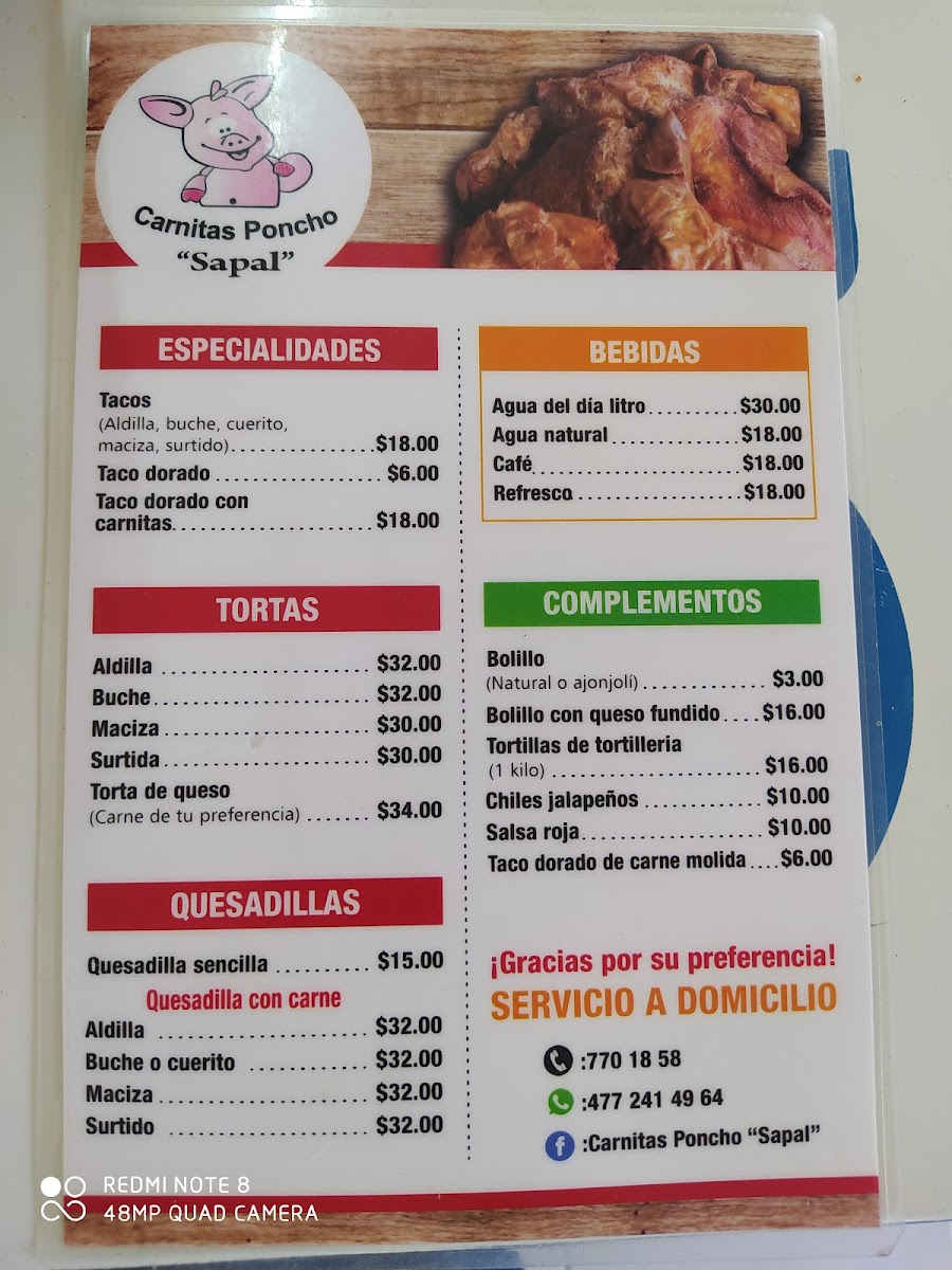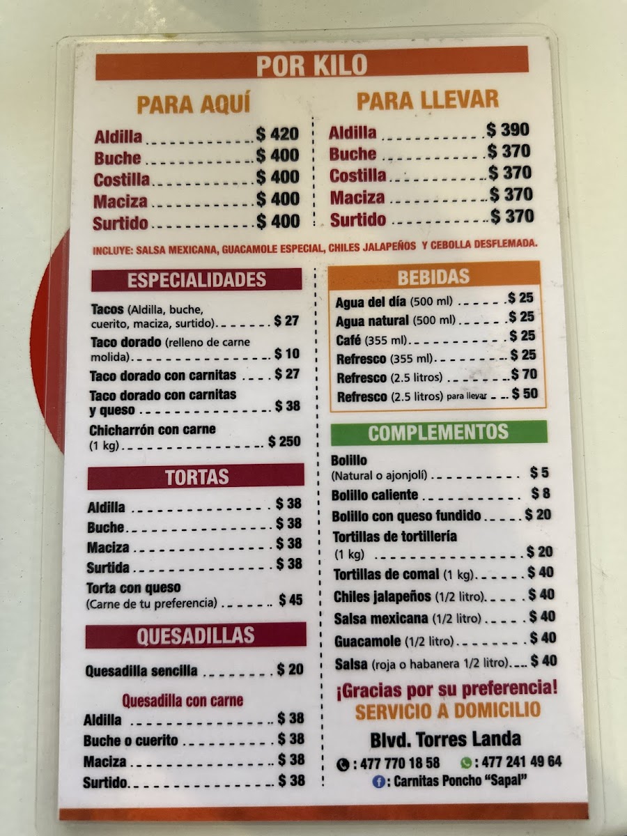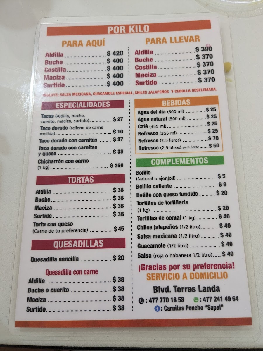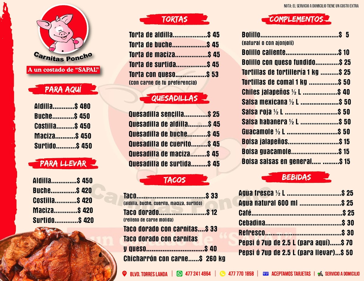 CARNITAS PONCHO SAPAL Menu (Update 2025)